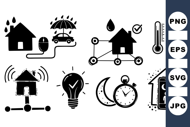 Mobile App Icons Connected Home Home Automation Smart Home Icons Temperature Control Icons Wireless Sensor Pack Energy Monitoring Icons Security Device Graphics Modern Tech Designs Smart Device Symbols