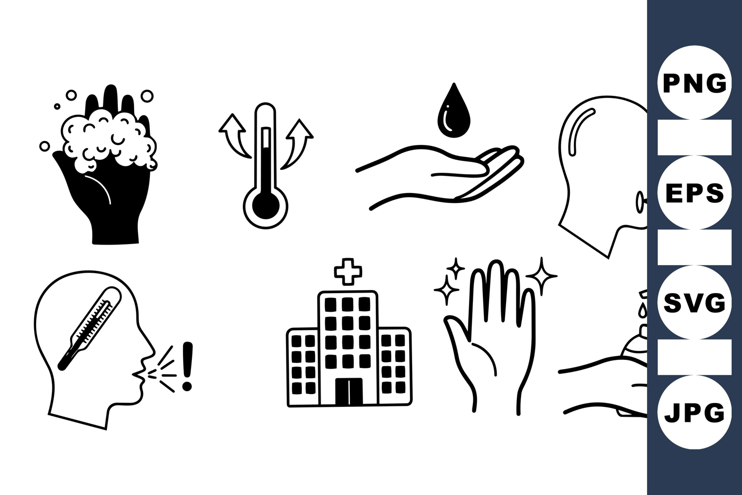 Healthcare Icon Hand Washing Clipart Hospital Building Svg Health Hygiene Icons Medical Safety Symbols Fever Check Illustration Sanitize Hands Graphic Illness Warning Icons Cough Prevention Clipart Disinfectant Pump Vector