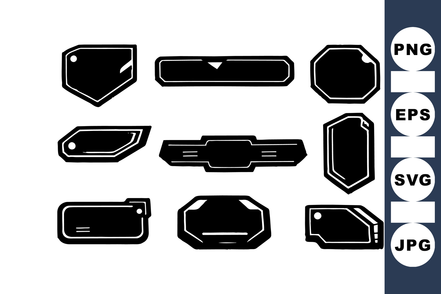 Vintage Label Clipart Hand Drawn Badge Retro Badge Graphics Black Tag Designs Vector Label Shapes Outline Frame Elements Classic Tag Illustrations Decorative Border Art Monochrome Label Vector Flat Vintage Tags