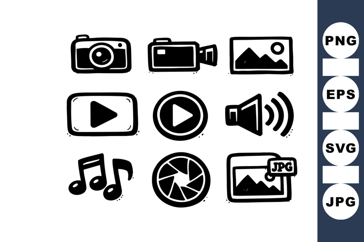 Hand Drawn Media Icons For Digital Design