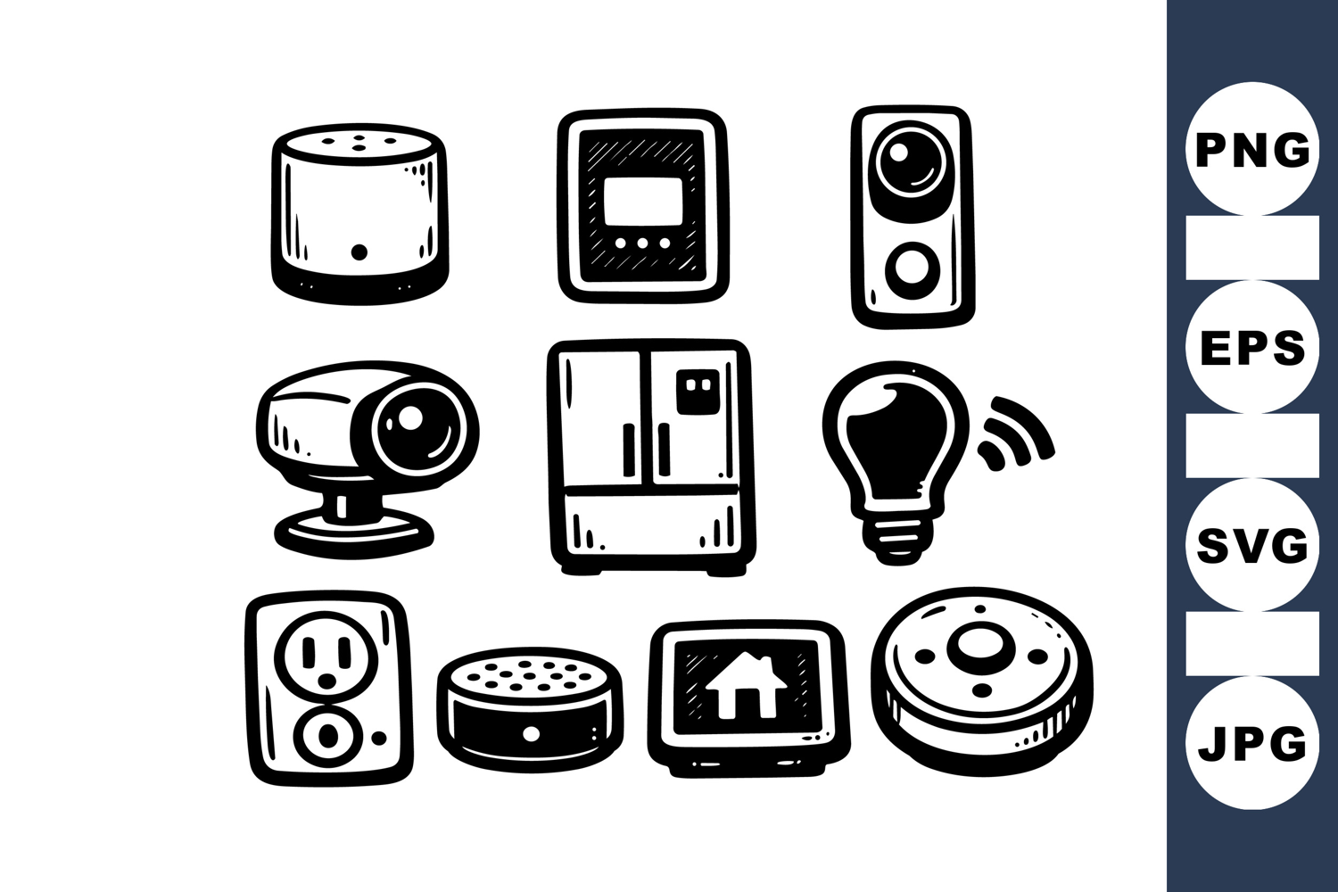 Hand Drawn Icons Printable Tech Icons Security Camera Illustration Voice Control Icons Home Automation Graphics Smart Home Svg Smart Device Icons Doodle Gadget Illustrations Wireless Device Clipart Modern Household Icons
