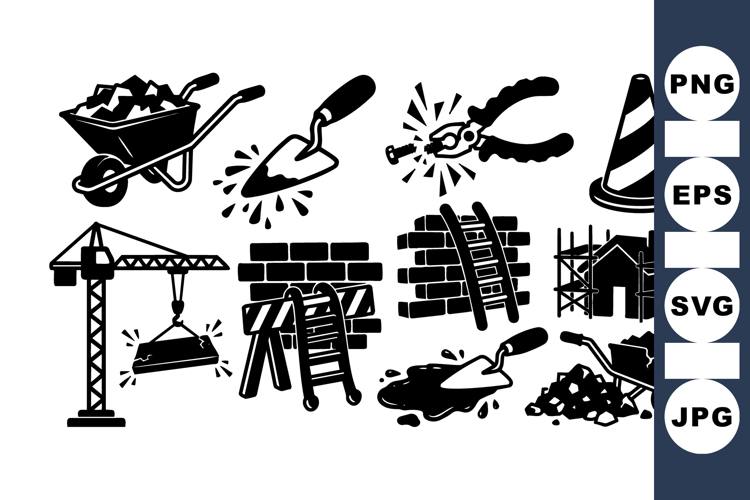 Brick Wall Clipart Construction Site Clipart Hand Tool Illustration Black Vector Tools Building Work Graphics Tool Silhouette Art Industrial Equipment Design Worksite Safety Illustration Construction Ladder Graphic Wheelbarrow Vector Design