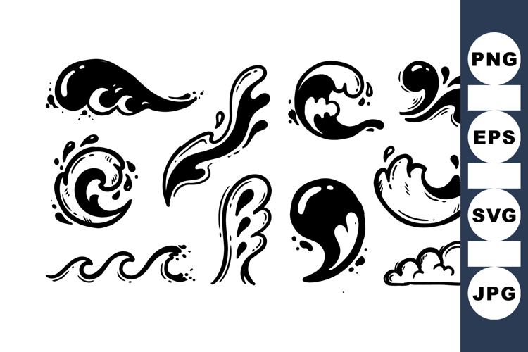 Hand Drawn Water Wave Clipart Illustrations