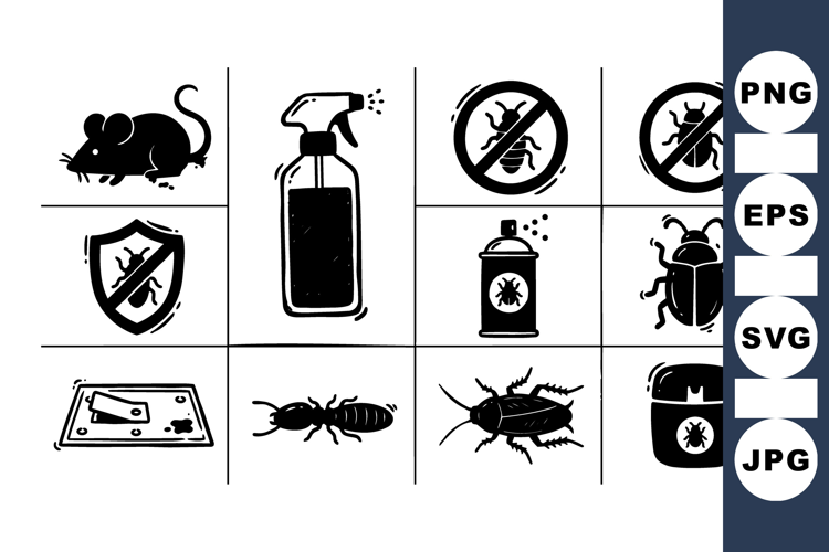 Spray Bottle Illustration Pest Control Icons Insect Spray Vector Rodent Trap Design Bug Removal Graphics Cockroach Clip Art Household Pest Vector Ant Extermination Icon Disinfectant Spray Art Mouse Pest Icon