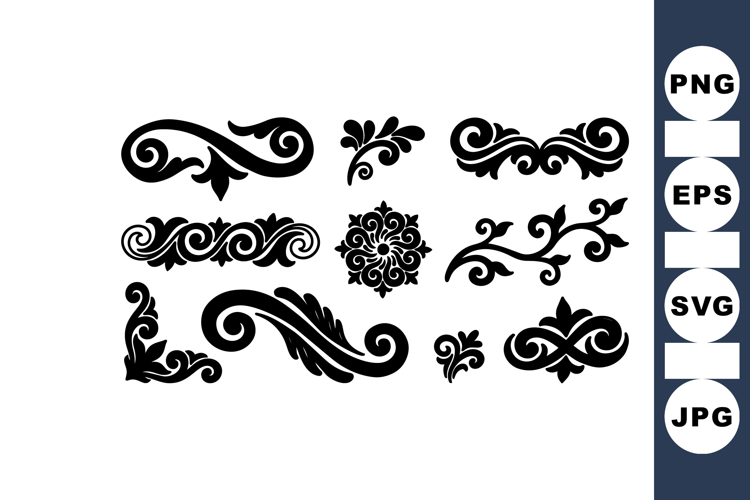 Decorative Vector Elements Classic Ornamental Design Vintage Decorative Motifs Elegant Vector Design Ornate Floral Flourish Classic Baroque Ornament Black Swirl Patterns Stylish Vintage Motifs Ornate Scroll Decoration Floral Lace Vector