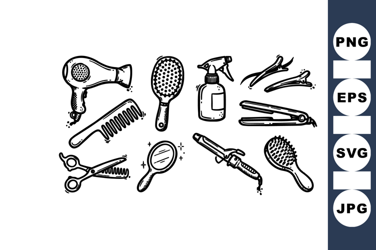 Barber Shop Illustration Beauty Salon Icons Hair Tools Svg Hand Drawn Hair Salon Tool Clipart Hairstylist Vector Art Hair Styling Graphics Hairdresser Printable Art Brush Comb Icons Curler Straightener Illustration
