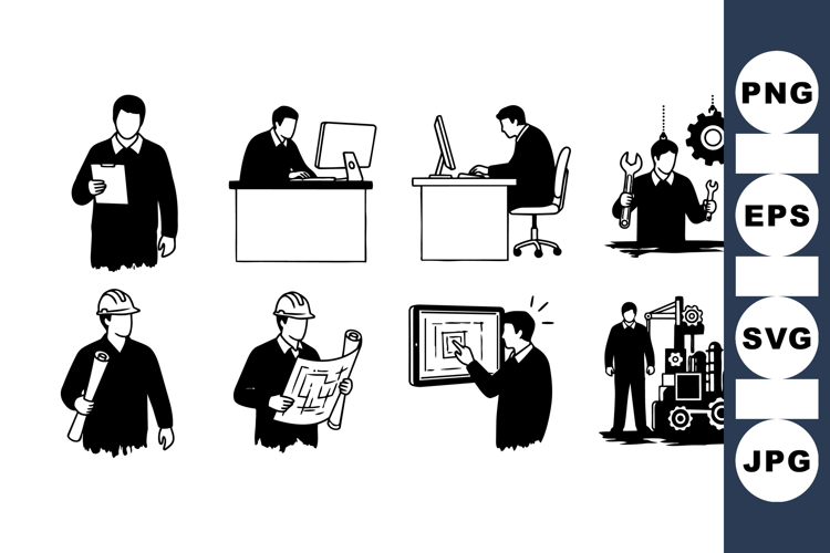 Factory Machinery Graphics Industrial Engineer Icons Worker Clipart Design Technical Blueprint Vector Office Workspace Illustration Construction Engineer Artwork Machinery Repair Icon Automation Panel Drawing Industrial Process Graphic Professional Engineer Vector