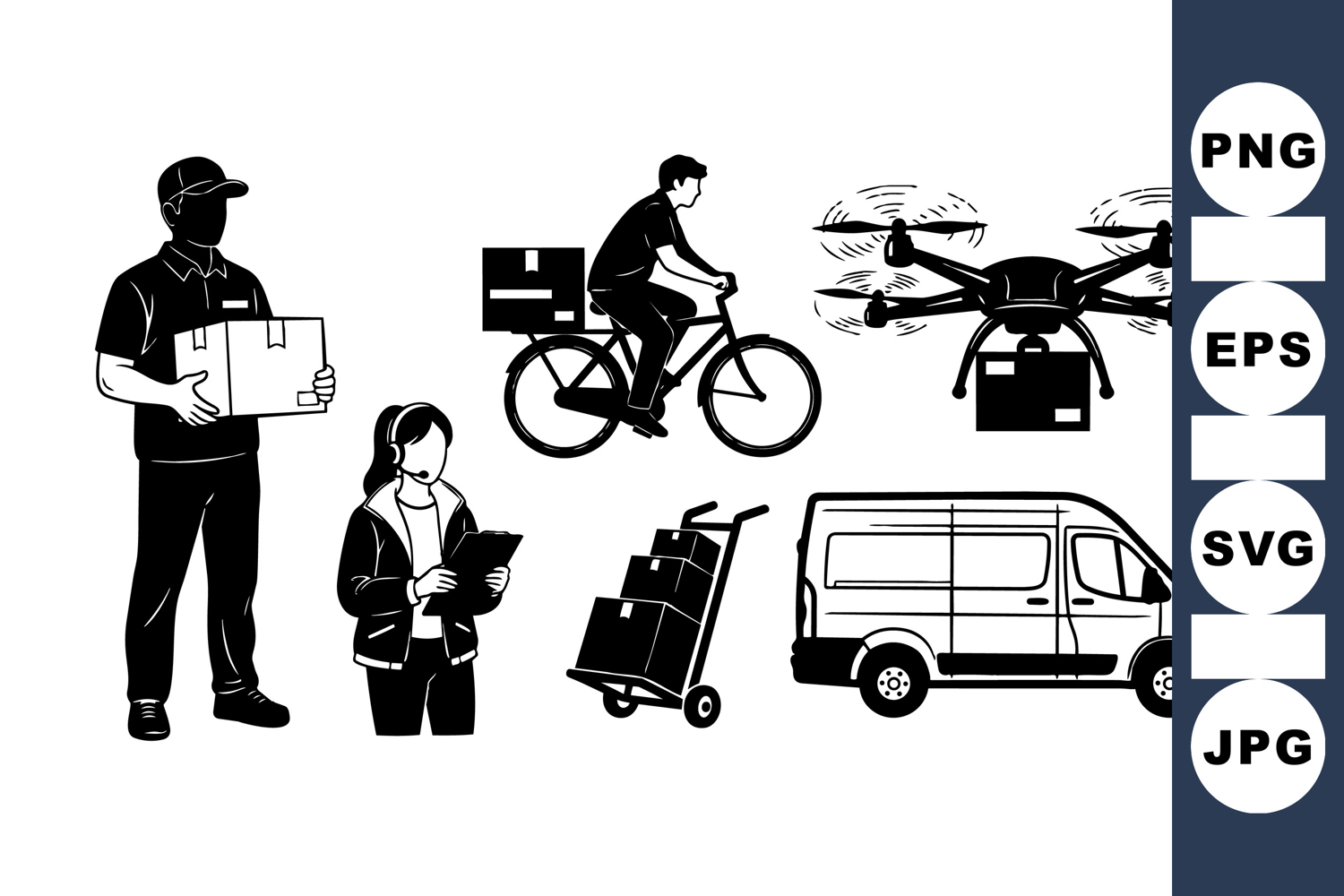 Courier Service Graphics Delivery Transport Vector Logistics Icons Design Shipping Delivery Illustration Package Delivery Clipart Drone Delivery Artwork Bike Courier Design Delivery Van Illustration Warehouse Logistics Graphic Parcel Shipment Icons