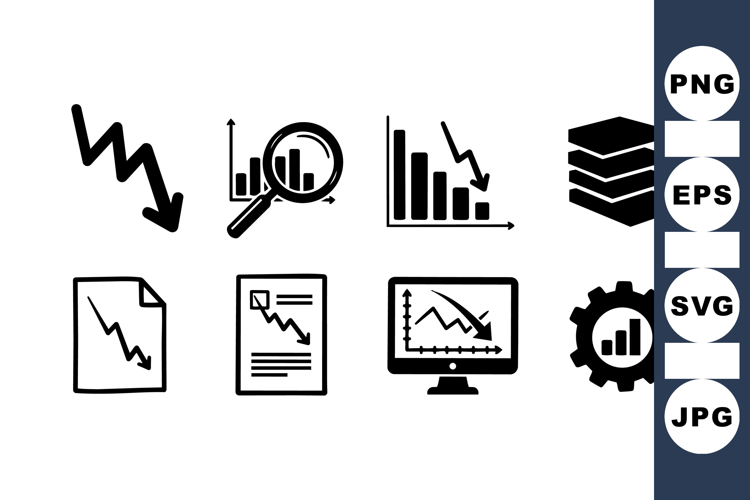 Financial Report Icons Business Analysis Symbols Business Data Graphics Financial Decline Icons Stock Market Symbols Economic Downturn Design Investment Loss Illustration Negative Trend Graphics Data Performance Icons Profit Decrease Visuals
