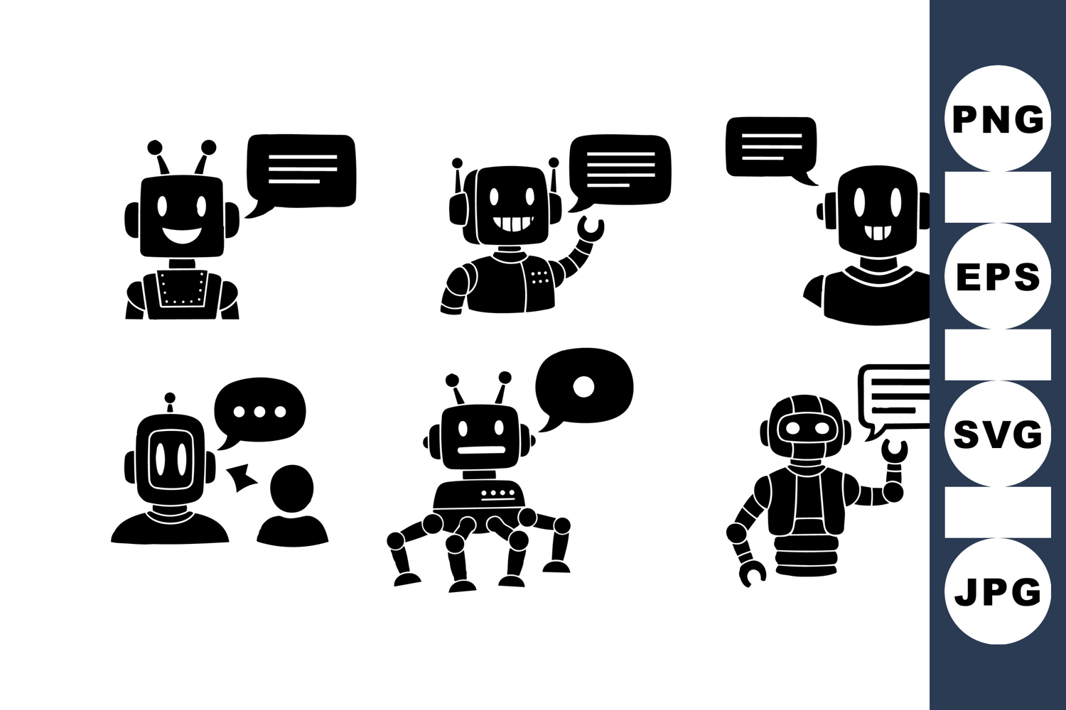 Technology Icon Design Chatbot Robot Icons Friendly Robot Illustrations Ai Assistant Graphics Robot Conversation Clipart Digital Assistant Icons Robot Speech Bubbles Chatbot Svg Images Robotic Avatar Design Automation Graphic Elements