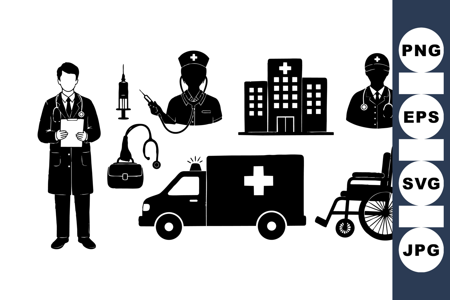 Nurse Syringe Clipart Medical Equipment Vector Medical Health Icons Patient Care Graphics Emergency Ambulance Design Doctor Nurse Graphics Hospital Building Illustration Healthcare Professional Clipart Wheelchair Patient Icon Stethoscope Health Symbol
