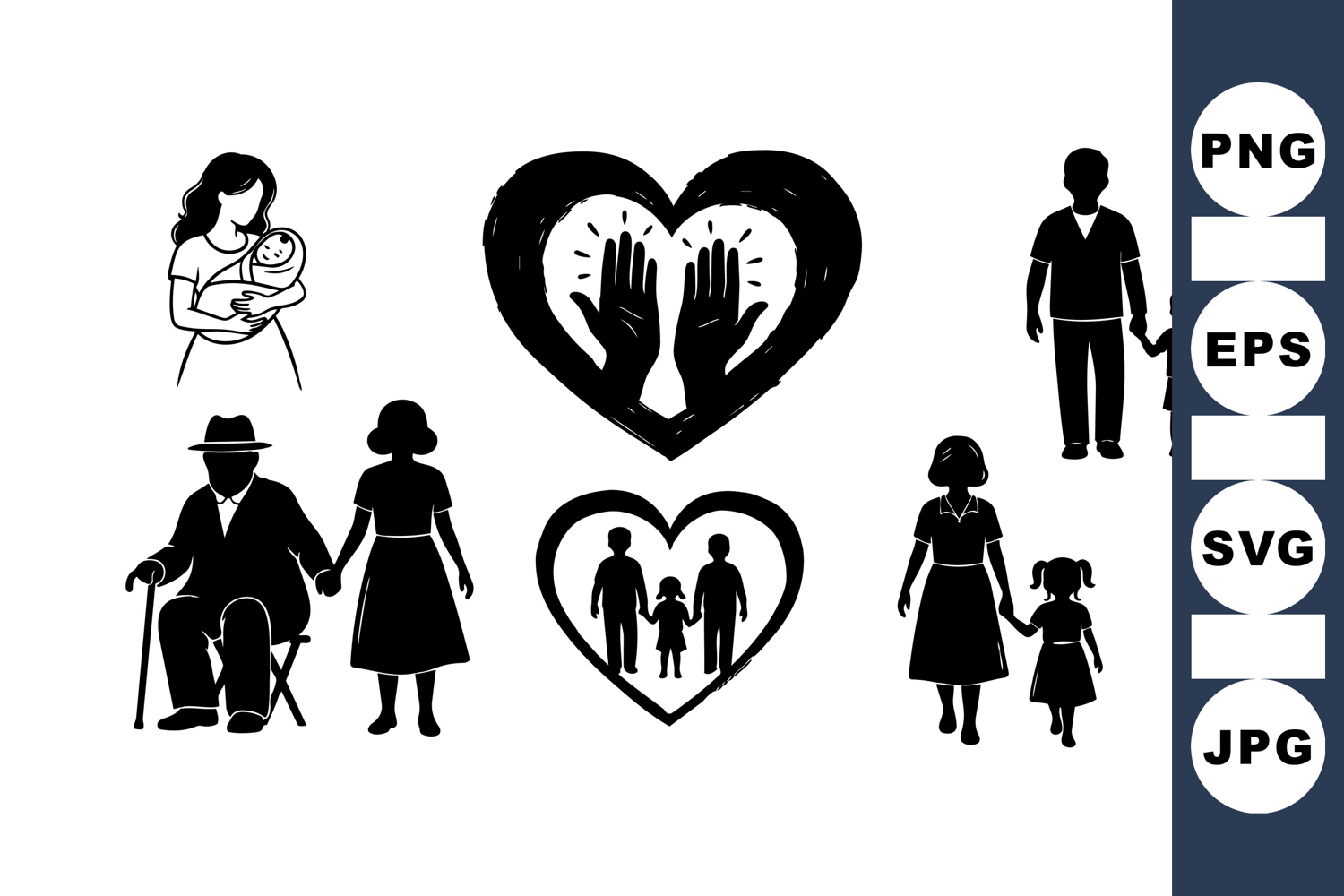 Mother Holding Baby Parents With Children Father With Son Parent Child Illustration Family Love Graphics Family Silhouette Clipart Grandparent Family Design Family Heart Icon Hand Silhouette Art Family Unity Artwork
