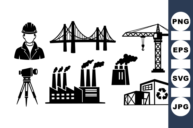 Construction Worker Icon Industrial Factory Silhouette Engineering Tool Graphic Building Crane Illustration Surveying Equipment Design Steel Bridge Vector Factory Smoke Chimney Recycling Plant Drawing Urban Development Icon Manufacturing Plant Image