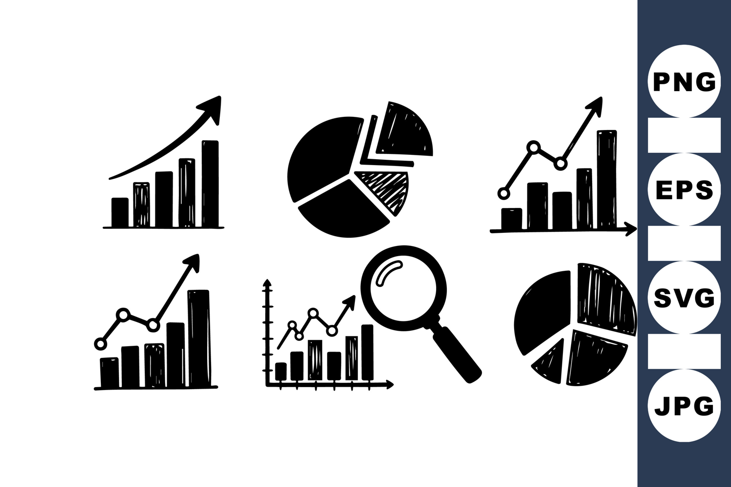 Pie Chart Illustration Hand Drawn Charts Financial Report Graphics Business Data Icons Marketing Data Visuals Growth Arrow Graph Analytics Chart Design Line And Bar Graphs Statistics Infographic Design Research Analysis Icons