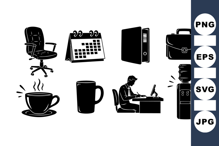 Coffee Cup Graphic Office Vector Icons Workspace Clipart Design Professional Work Graphics Office Chair Image Calendar Vector Illustration Desk Working Icon Water Cooler Illustration Briefcase Vector Art