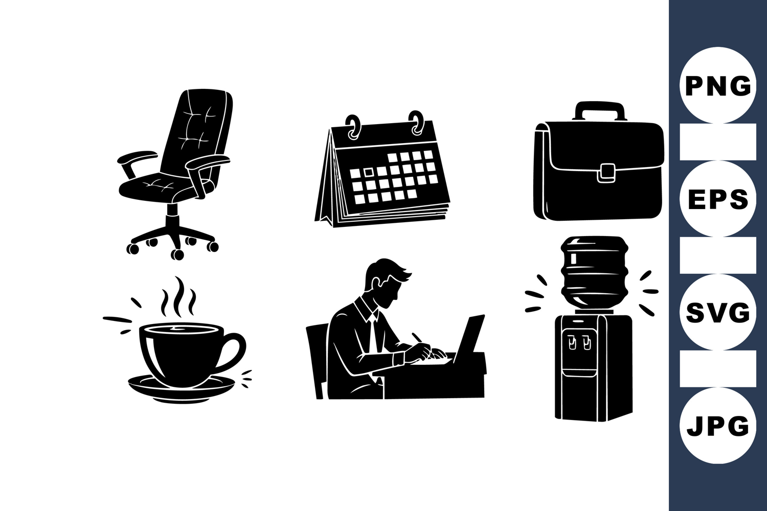 Coffee Cup Graphic Work Schedule Planner Office Work Icons Office Chair Illustration Professional Workspace Design Employee At Desk Water Cooler Image Business Briefcase Drawing Office Meeting Tools