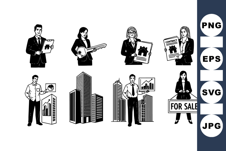 Vector Illustrations of Real Estate Agents and Buildings