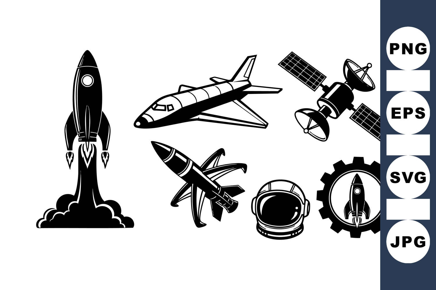 Rocket Launch Illustration Space Exploration Icons Astronaut Helmet Design Satellite Vector Graphics Space Shuttle Drawing Scientific Mission Icons Space Technology Clipart Engine Thrust Graphic Spacecraft Silhouette Art Space Science Illustrations