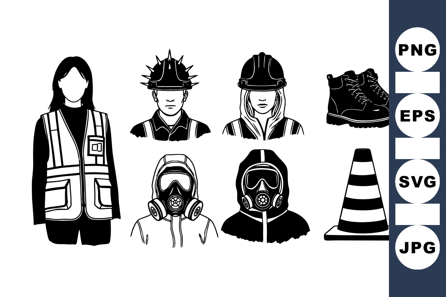 Construction Worker Vector Protective Equipment Clipart Safety Helmet Illustration Industrial Safety Gear Work Boots Graphic Gas Mask Icon Design Safety Vest Drawing Hazard Warning Cone Occupational Protection Art Worker Safety Illustration