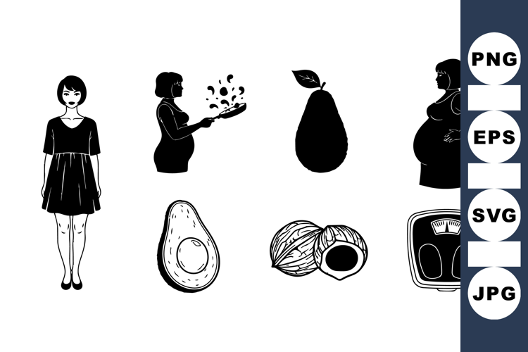 Weight Scale Icon Healthy Lifestyle Clipart Pregnant Woman Vector Pear Fruit Illustration Healthy Eating Design Avocado Fruit Design Nut Clipart Graphics Cooking Food Svg Wellness Project Art Nutrition Meal Plan