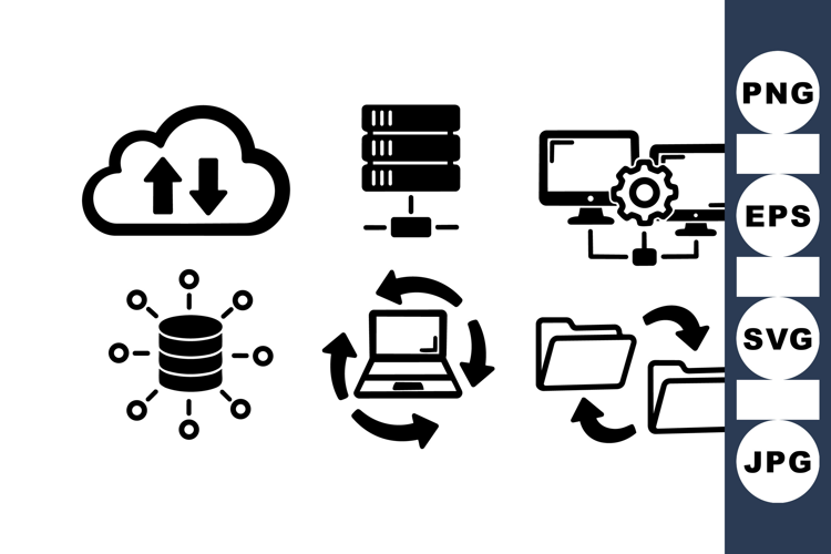 Data Sync Icons Cloud Storage Illustration Server Connection Graphic File Transfer Design Network Communication Icon Database Storage Vector Digital Backup Symbol It Network Icons Computer Sync Graphic