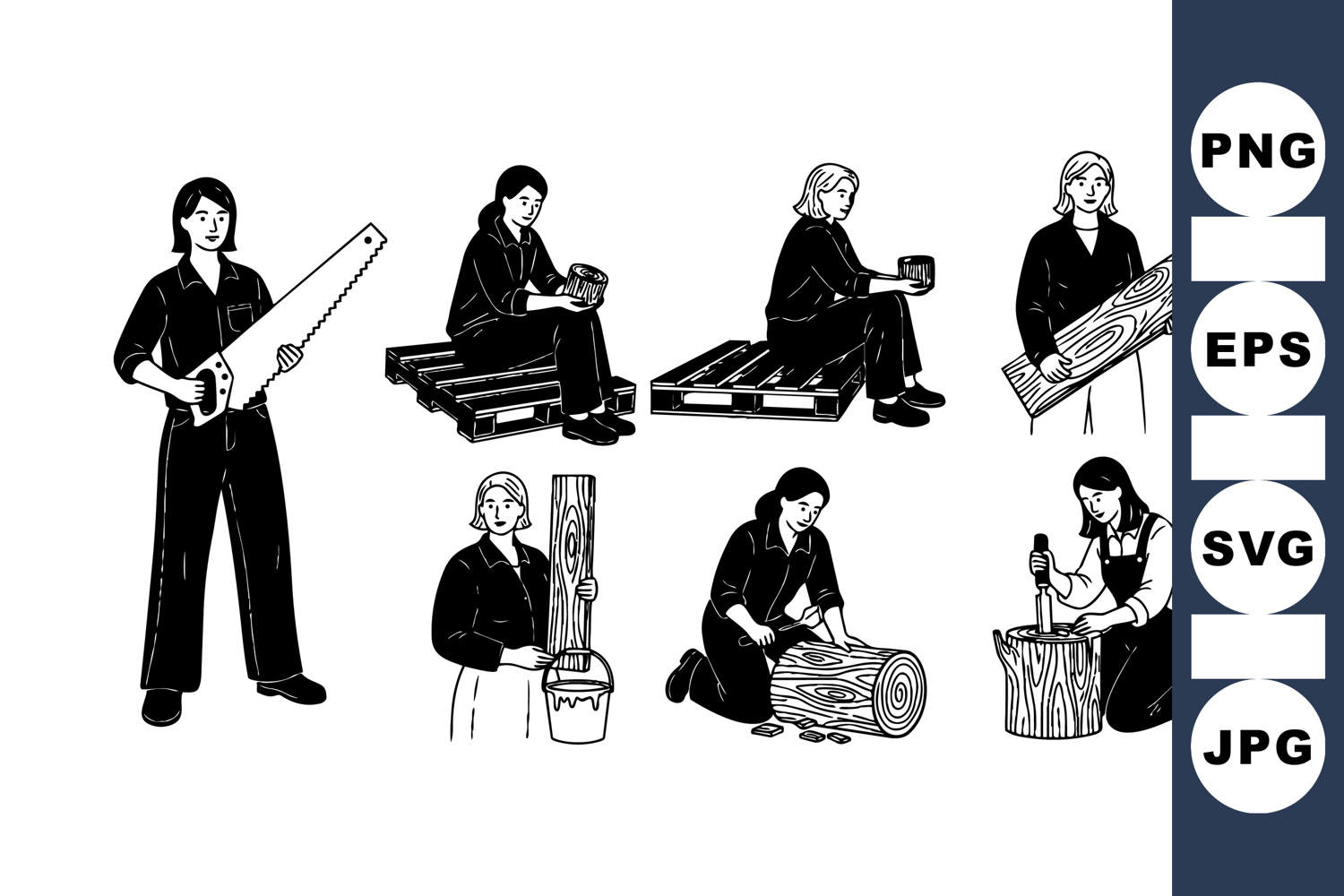 Similar Design Products to Black And White Woman Woodworking Vector Clipart