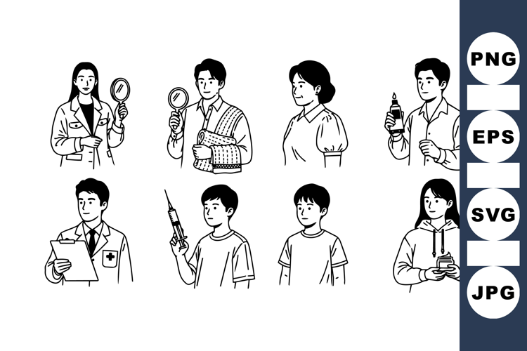 Hand Drawn Medical Character Line Art Illustrations