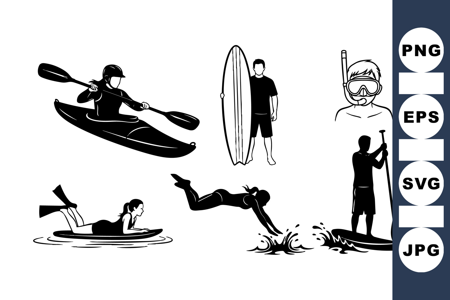 Water Sport Illustration Water Sports Clipart Paddle Board Graphic Summer Beach Activity Active Lifestyle Graphic Kayaking Silhouette Art Surfing Vector Graphic Diving Mask Illustration Snorkel Gear Design Outdoor Water Sport
