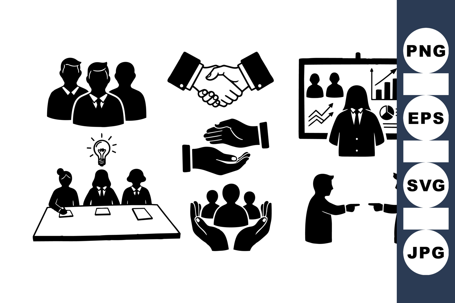 Business Team Clipart Office Presentation Design Corporate Meeting Graphics Hand Drawn Silhouettes Business Handshake Illustration Strategy Planning Visuals Teamwork Concept Art Professional Group Icon Workplace Collaboration Design Leadership Meeting Graphic