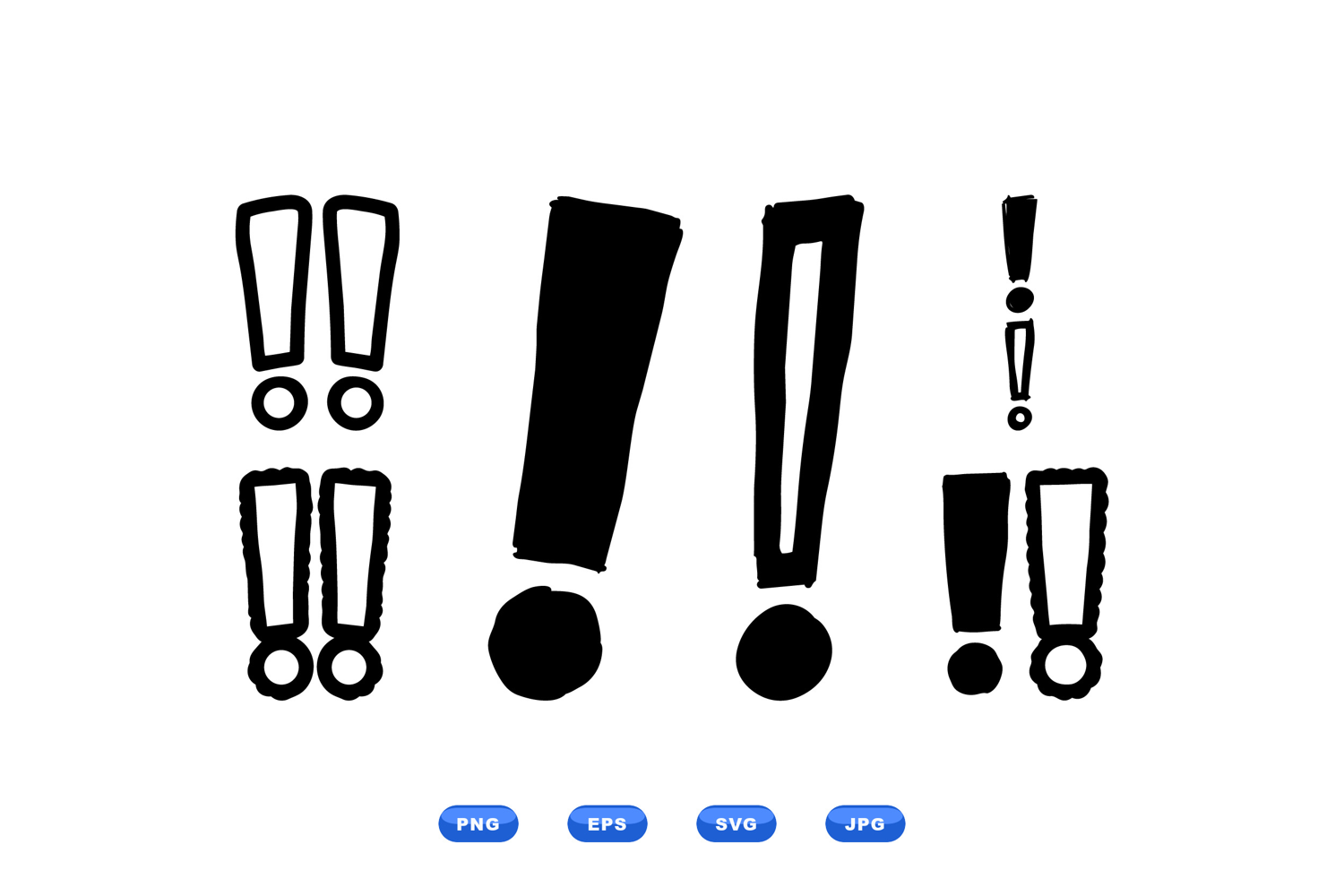 A of hand drawn exclamation mark icons rendered in bold ink brush strokes for logos posters web and graphic resources with playful expressive grunge mood