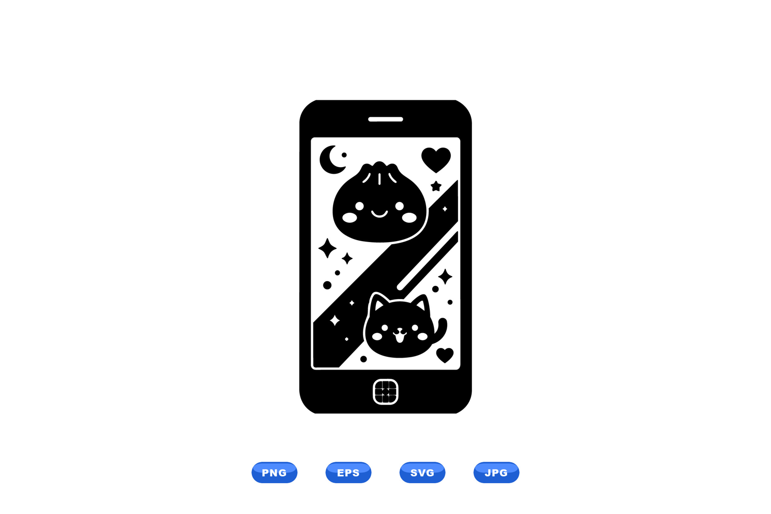Hand Drawn Icons Digital Craft Supplies Black White Silhouettes Kawaii Phone Stickers Cute Dumpling Clipart Cat Face Graphics Mobile Sticker Designs Printable Phone Decals Phone Wallpaper Graphics Cute Mobile Decorations