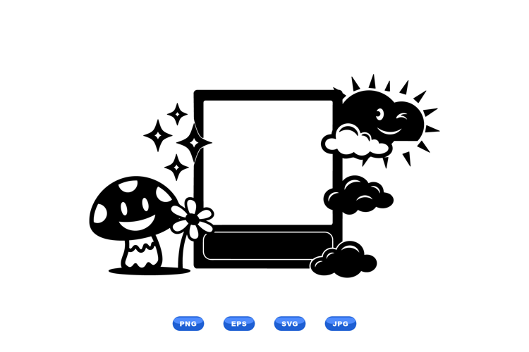 Vector Clip Art Svg Cut File Kawaii Mushroom Clipart Printable Label Template Smiling Sun Illustration Kids Party Design Cute Nursery Graphic Mushroom Photo Frame Cloud Frame Template Scrapbook Element Art