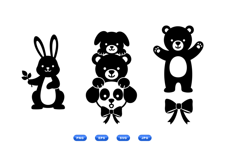Baby Shower Graphics Cute Animal Clipart Nursery Decor Svg Bunny Rabbit Silhouette Panda Bear Vector Kawaii Animal Illustration Cartoon Animal Icons Children Birthday Design Toddler Room Printable Ribbon Bow Embellishment