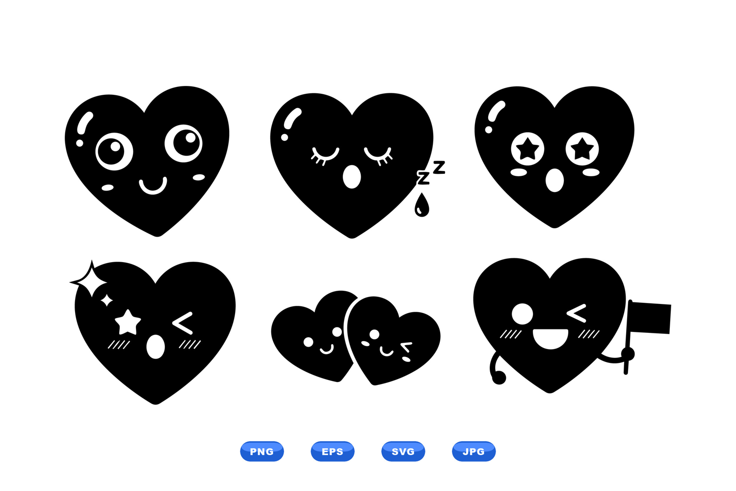 Svg Cut Files Cute Heart Clipart Printable Heart Stickers Black Heart Icons Kawaii Heart Svg Party Decoration Graphics Children Craft Designs Valentine Craft Files Scrapbook Heart Elements Emoji Heart Graphics