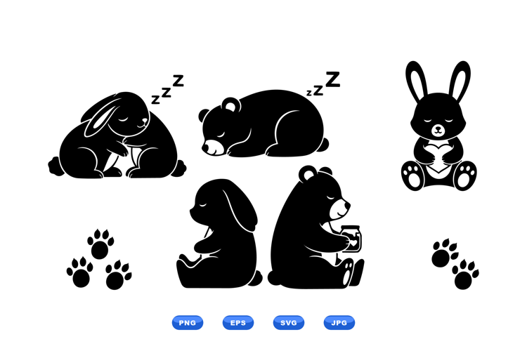 Nursery Wall Art Paw Print Vector Baby Shower Svg Woodland Animal Svg Kids Birthday Invitation Hand Drawn Animal Printable Nursery Decor Sleepy Bunny Clipart Silhouette Animal Graphic Sleepy Bear Illustration