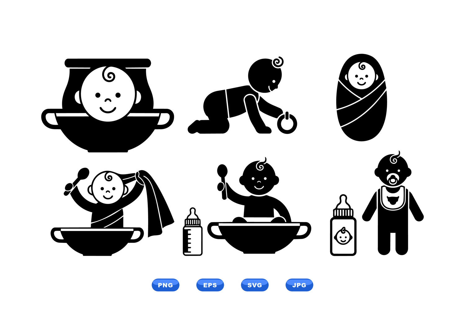 Nursery Wall Art Baby Shower Invite Newborn Photo Props Baby Icon Svg Printable Nursery Decor Hand Drawn Baby Cute Baby Icons Feeding Time Illustration Swaddle Vector Graphics Toddler Play Graphics