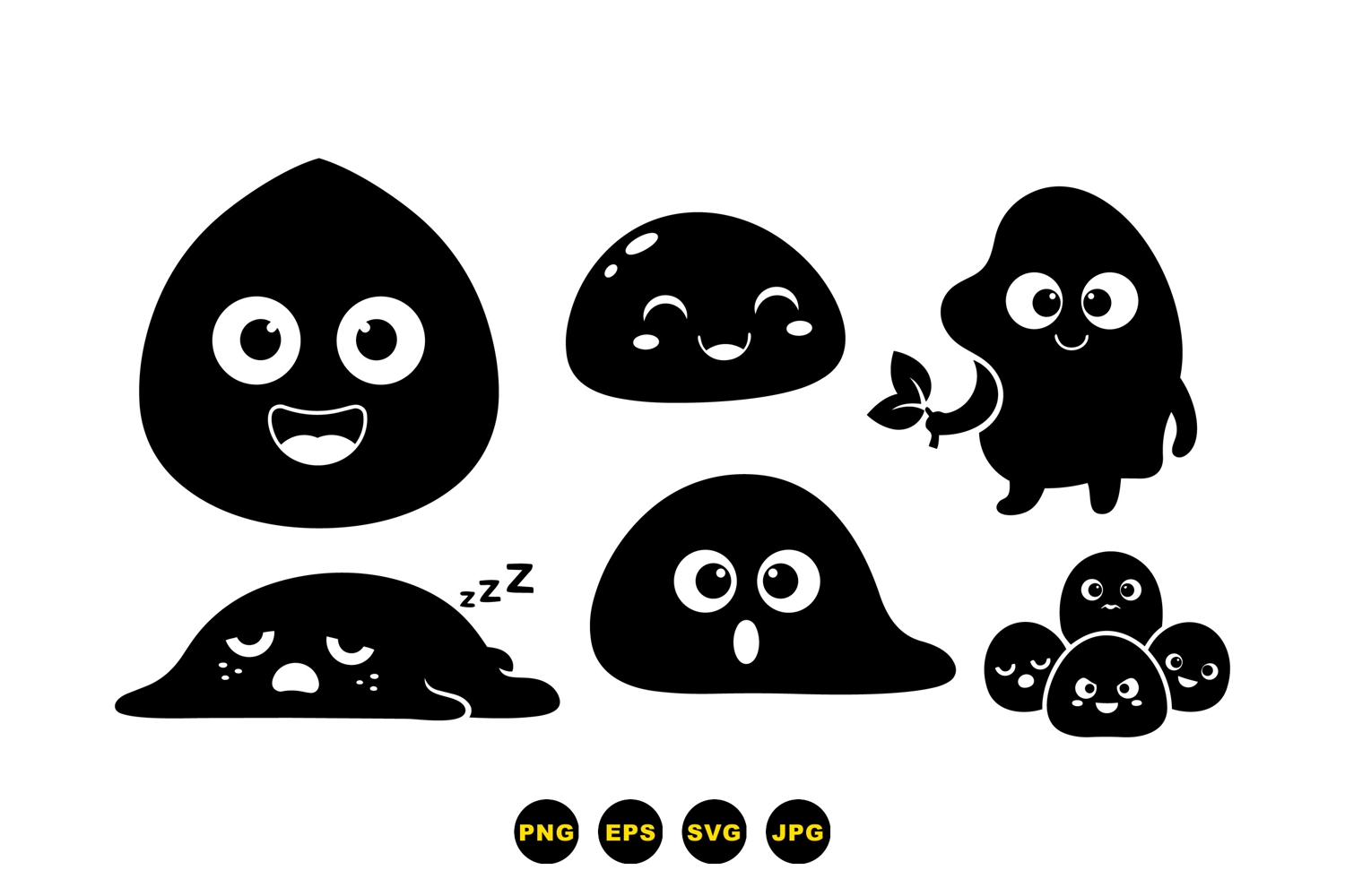 Nursery Wall Art Party Favor Tags Kids Party Graphics Printable Sticker Sheet Hand Drawn Characters Digital Craft Files Kawaii Blob Clipart Slime Character Svg Cute Slime Illustrations Vector Svg Characters