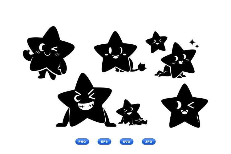 Iron On Transfer Nursery Wall Art Party Favor Labels Kids Craft Svg Printable Sticker Design Vector Mascot Illustration Kawaii Star Characters Cartoon Star Graphics Black Silhouette Star Childrens Birthday Decor