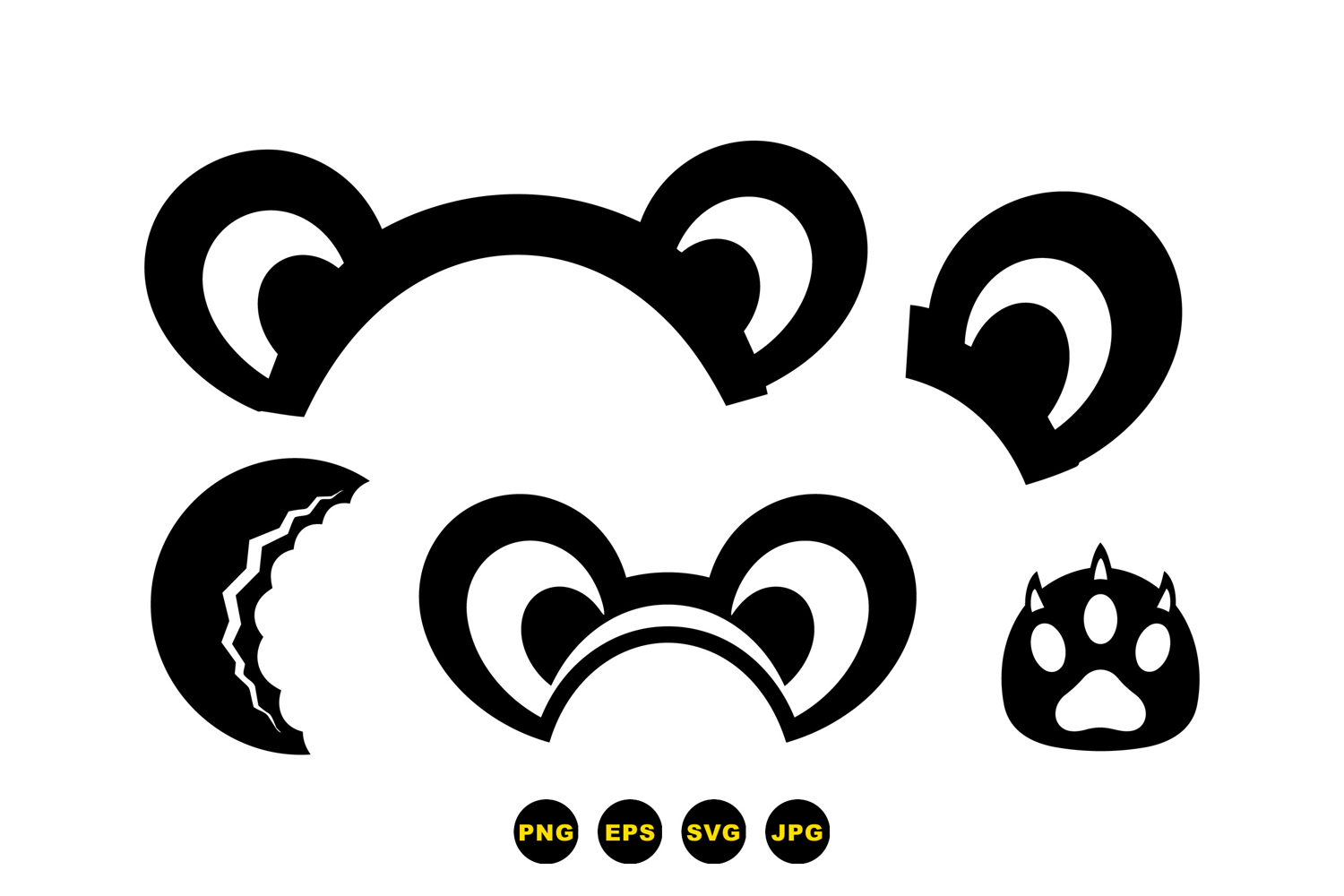 Svg Cutting Files Nursery Decor Printable Kids Craft Supplies Paw Print Graphics Cricut Friendly Designs Hand Drawn Ears Bear Ear Graphics Animal Costume Elements Cartoon Animal Elements Printable Party Props
