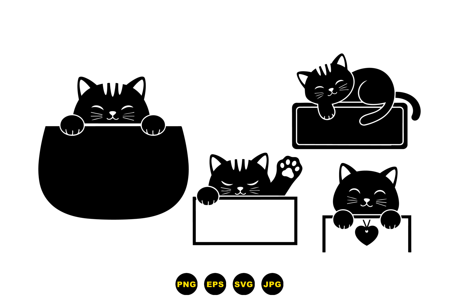 Digital Cut Files Nursery Wall Decor Party Favor Tags Printable Name Tags Black Cat Silhouette Cute Kitten Svg Peeking Cat Clipart Sticker Sheet Template Cat Sign Template Pet Label Designs