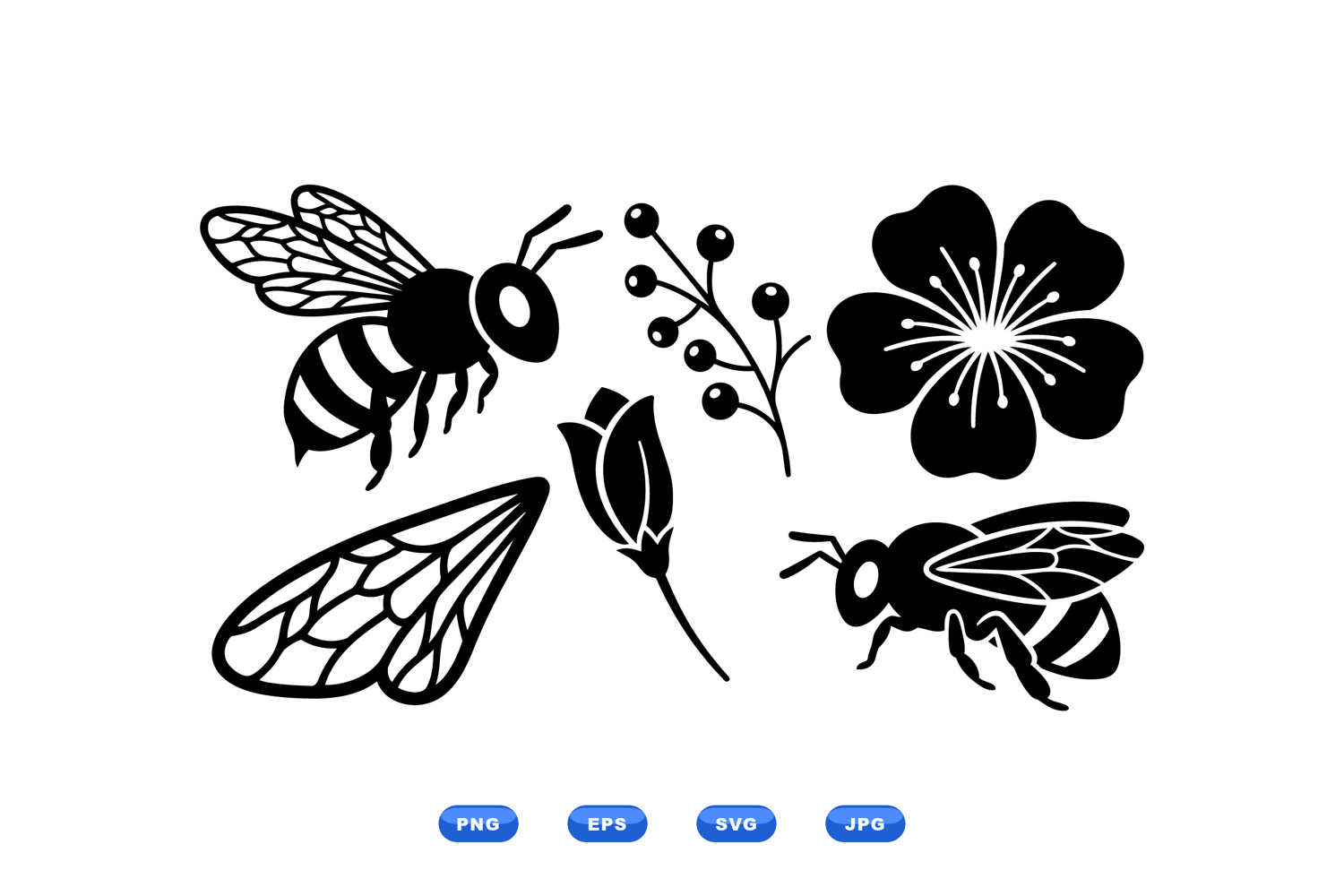 Hand Drawn Bee And Floral SVG Graphics For Crafts example image 1