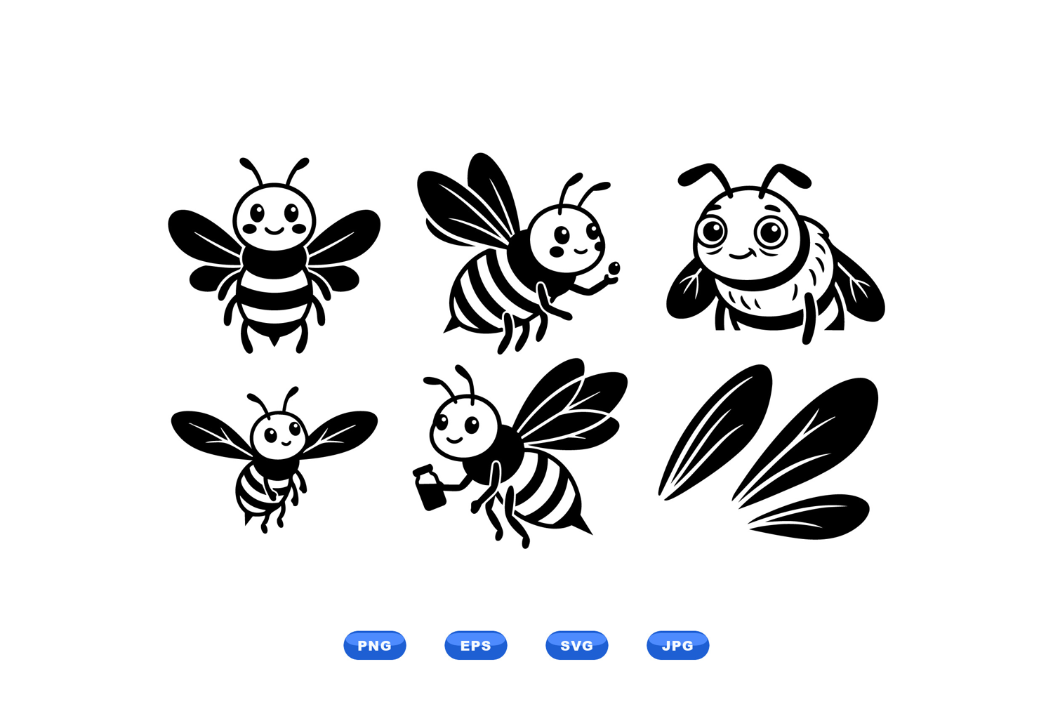 Kids Party Illustrations Bee Svg Files Kawaii Bee Clipart Hand Drawn Bee Printable Bee Art Vector Bee Illustrations Spring Floral Bee Honey Jar Motif Pollinator Design Elements Children's Craft Svg
