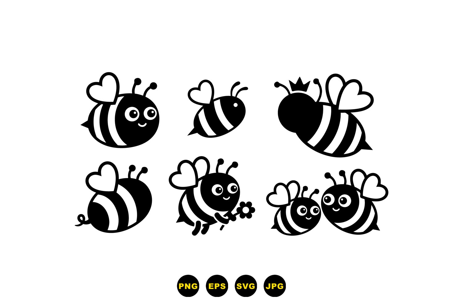 Nursery Wall Art Honey Bee Graphics Cute Bee Svg Bumble Bee Clipart Kids Party Decor Valentine Card Design Hand Drawn Bee Printable Sticker Sheet Spring Craft Supplies Wedding Favor Art
