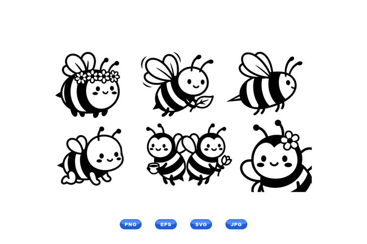 Honey Bee Illustrations Cute Bee Graphics Kids Party Graphics Hand Drawn Bee Bee Svg Clipart Nursery Bee Decor Kawaii Bee Illustrations Bumblebee Vector Art Bee Craft Files Spring Bee Designs