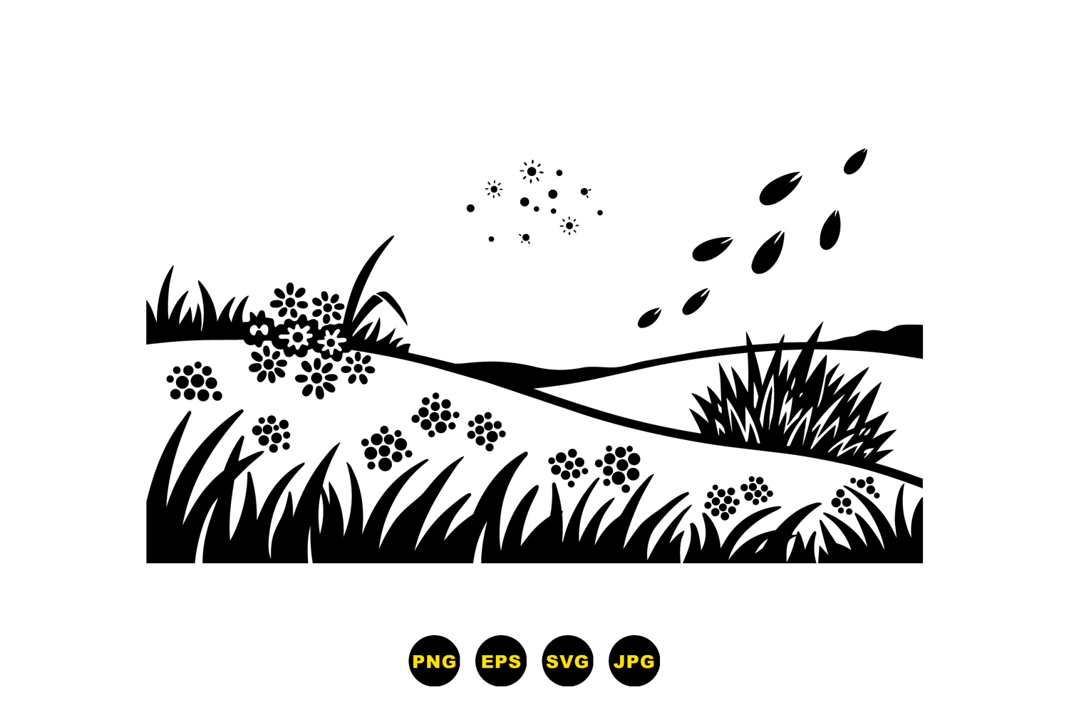 Hand Drawn Floral Floral Clipart Svg Spring Floral Graphic Printable Garden Decor Grass Silhouette Element Lawn Edge Illustration Meadow Grass Svg Garden Border Illustration Wildflower Vector Design Nursery Wall Graphic