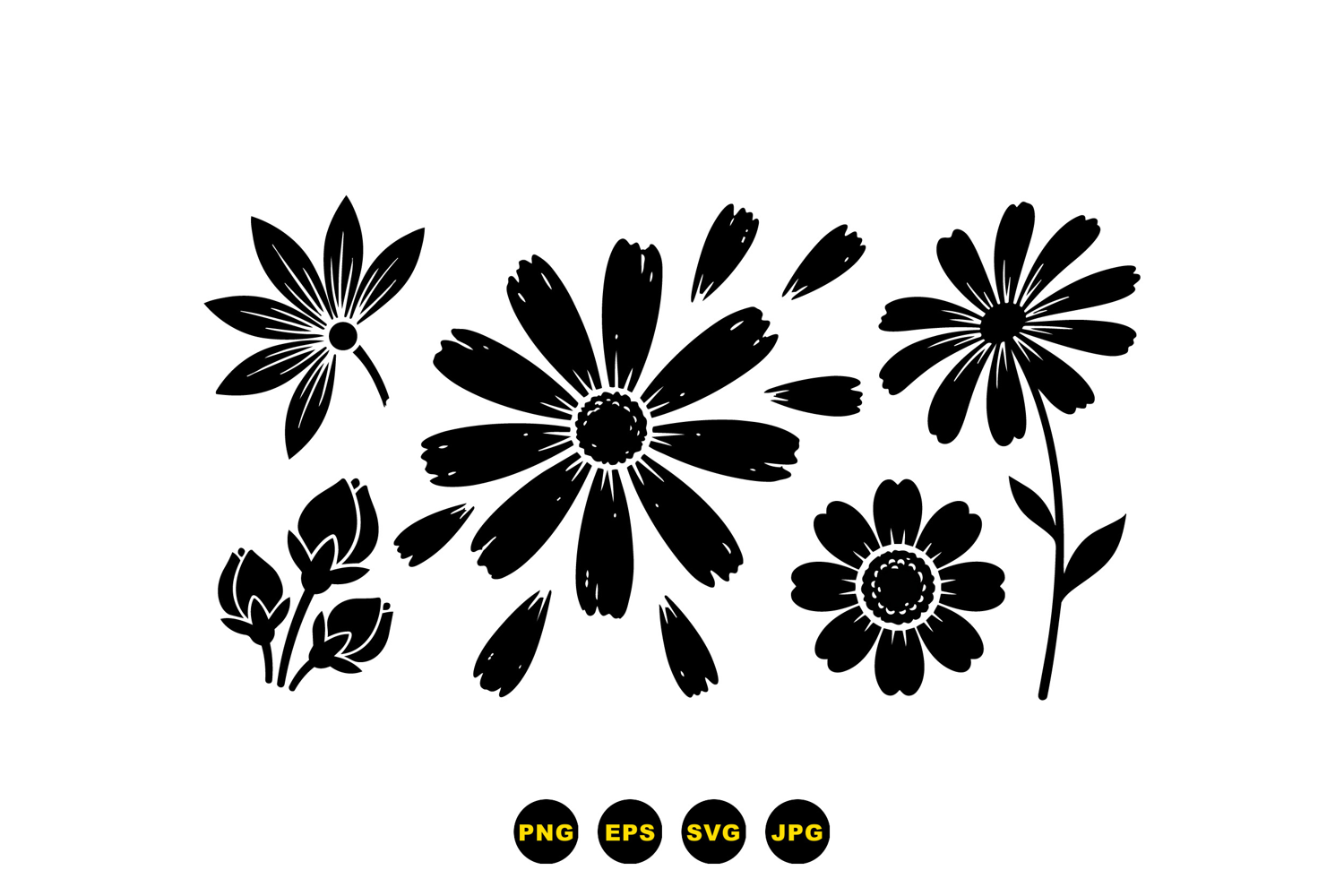 Wedding Floral Designs Printable Floral Designs Daisy Silhouette Art Vector Daisy Elements Floral Craft Templates Flower Svg Illustrations Garden Floral Graphics Seasonal Flower Illustrations Minimalist Flower Drawings Decorative Petal Motifs