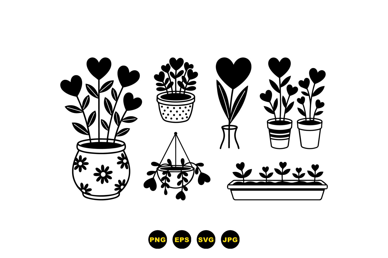 Craft Cutting Files Greeting Card Graphics Vector Plant Elements Valentine Floral Design Nursery Wall Printable Heart Plant Illustration Potted Heart Svg Hanging Planter Clipart Heart Leaf Icons Romantic Plant Decor