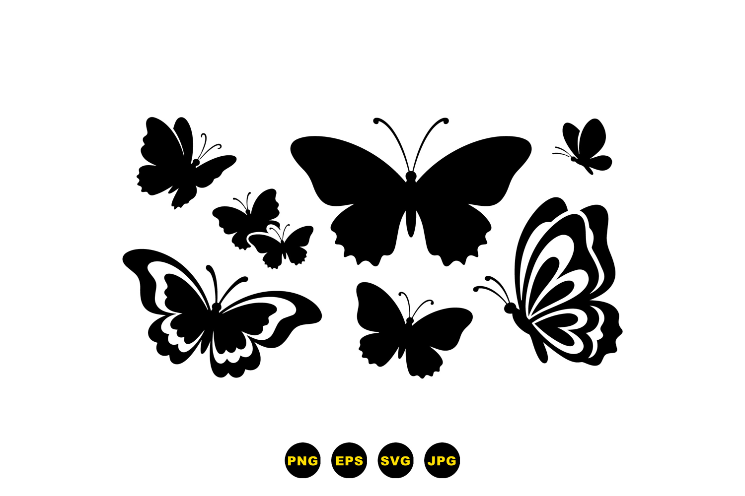 A flat silhouette butterfly vector shows six distinct wing shapes for logo design pattern making crafts and decorative print use peaceful