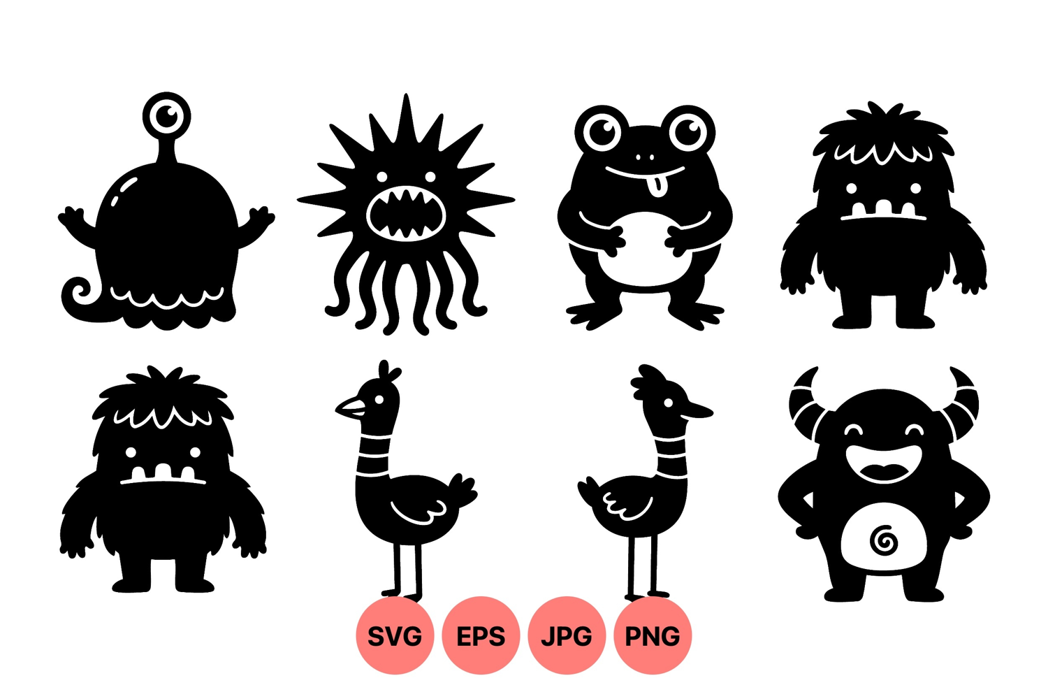 Funny Cartoon Monster Silhouette Clipart example image 1