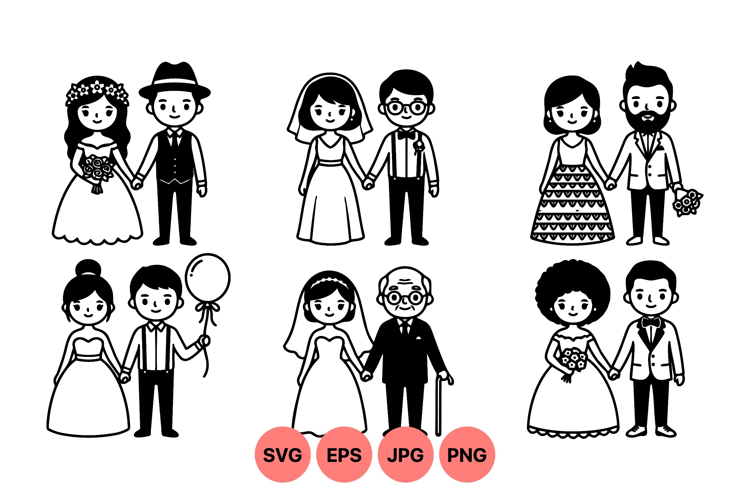 Hand Drawn Wedding Couples SVG Illustration